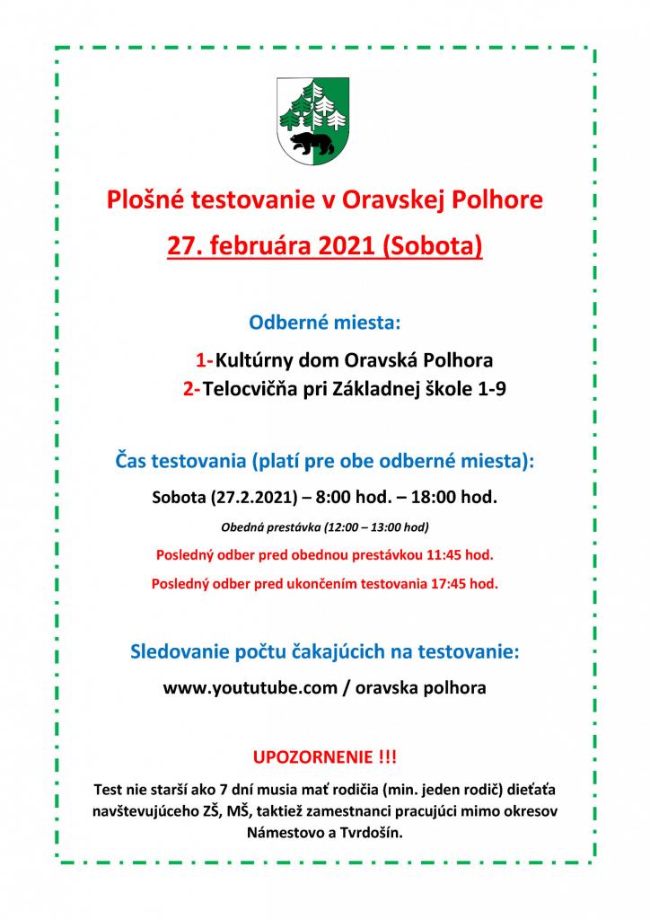 Harmonogram testovania na COVID 27. februára 2021 (sobota)