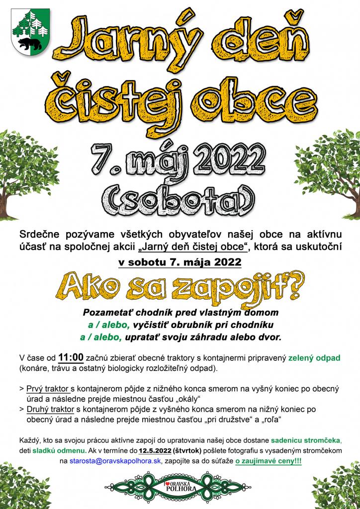 Zapojte sa do tradičnej akcie "Jarný deň čistej obce" a zahrajte o zaujímavé ceny. Už túto sobotu 7.mája 2022.