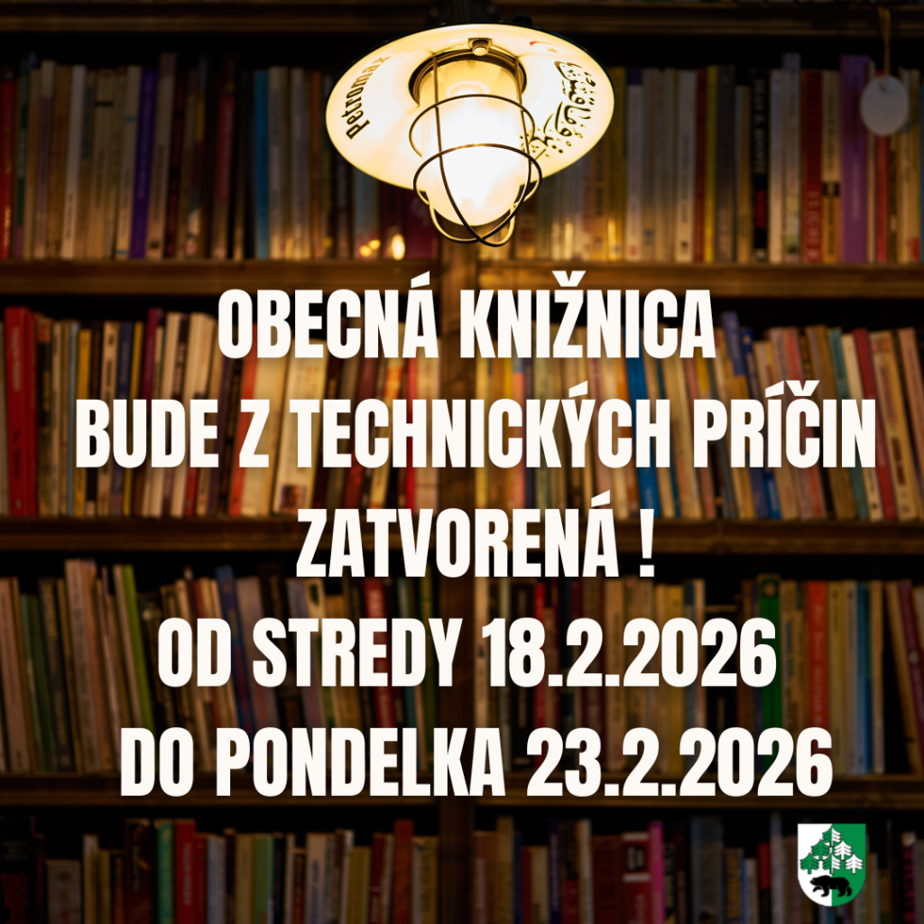 Obecná knižnica bude zatvorená. Ďakujeme za pochopenie a tešíme sa na vašu návštevu! ???? Otvorená bude opäť stredu 25.2.2026!