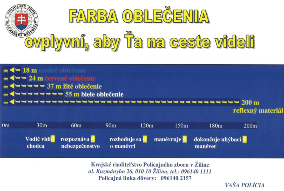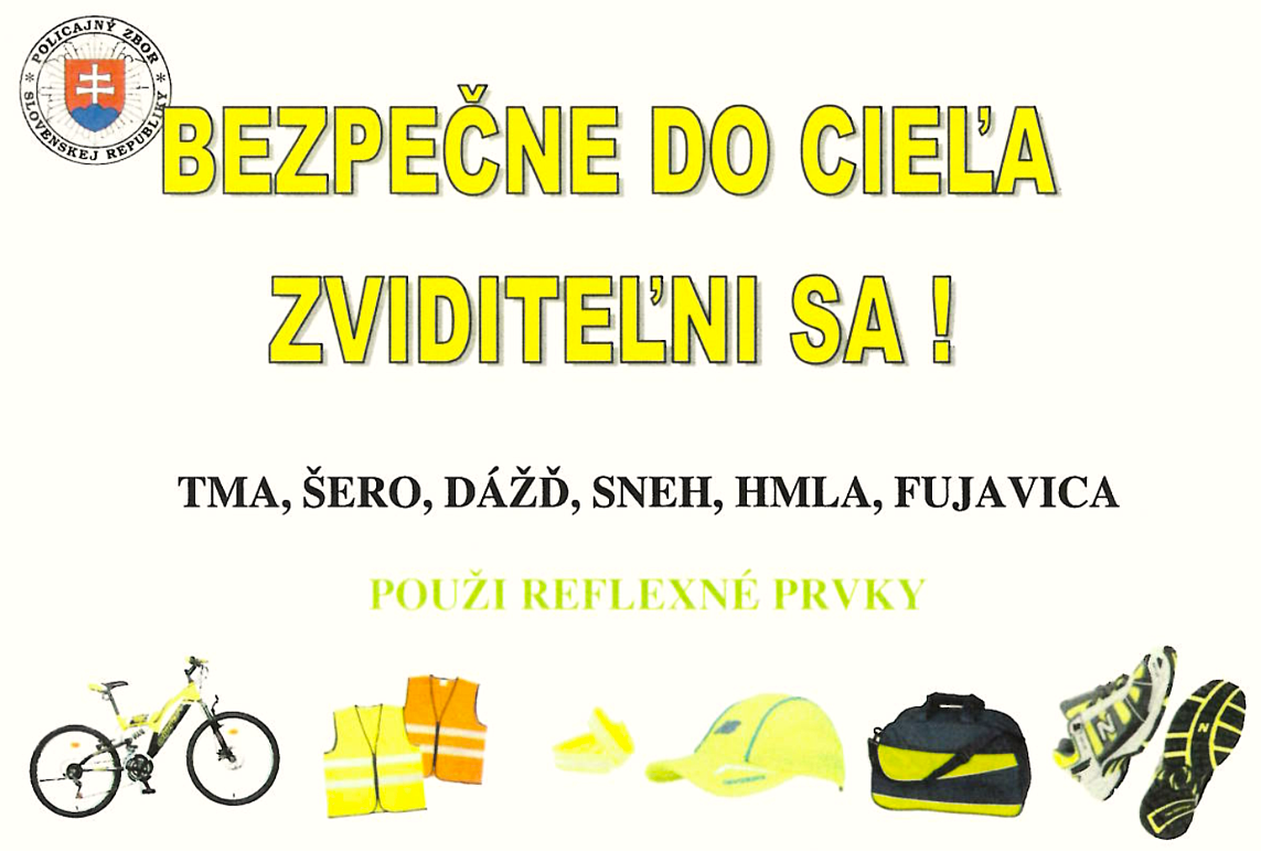 Okresné riaditeľstvo policajného zboru upozorňuje chodcov a cyklistov na povinnosť používania reflexných prvkov. Nezanedbávajte túto povinnosť, pretože zaplatiť môžete aj niečim vzácnejším než peniazmi.