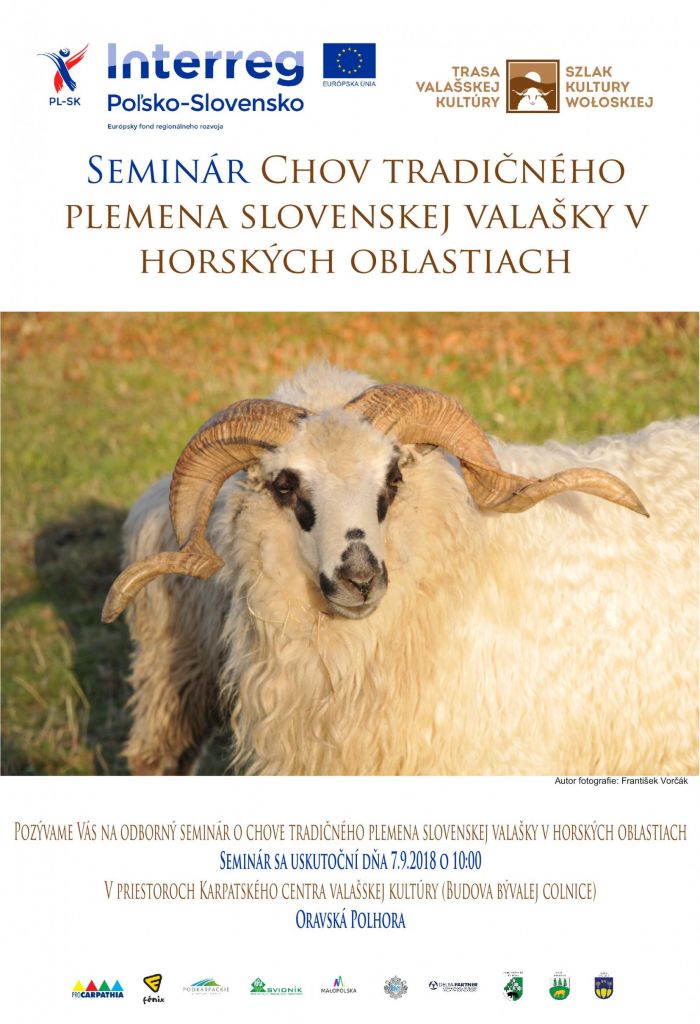 Pozývame Vás na odborný seminár o chove tradičného plemena slovenskej Valašky! Už tento piatok 7.9.2018 o 10:00 v priestoroch Karpatského centra valašskej kultúry (budova bývalej colnice) v Oravskej Polhore.