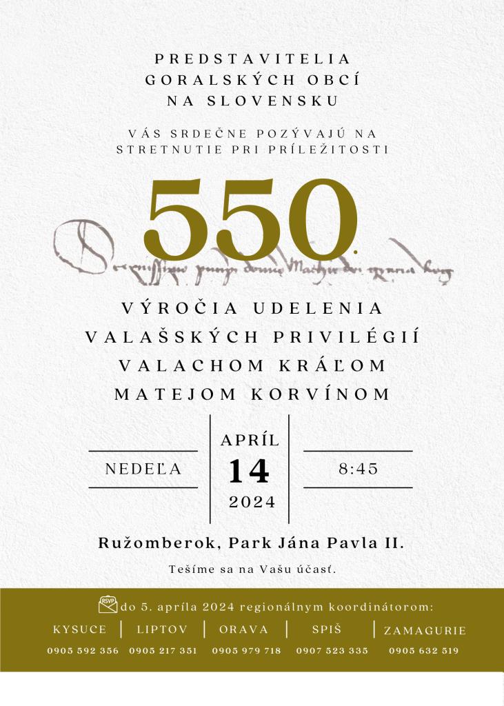 Cieľom podujatia je pripomenúť si v podstate prvý zápis o vzniku goralskej kultúry. Ako iste viete, aktívne pracujeme na jej zápise do UNESCO. Ak by sa to podarilo, bola by to určite veľmi prospešná vec pre nás všetkých. Aj týmto podujatím chceme napomôcť tomuto zápisu.