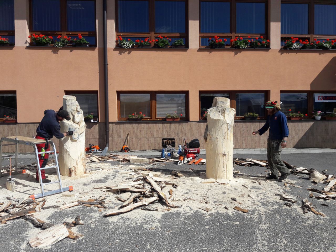 Gajdovačka už začala! Pred budovou kultúrneho domu si môžete verejne pozrieť prácu dvoch šikovných rezbárov. Príďte sa pozrieť ako a čo postupne vzniká v našej obci