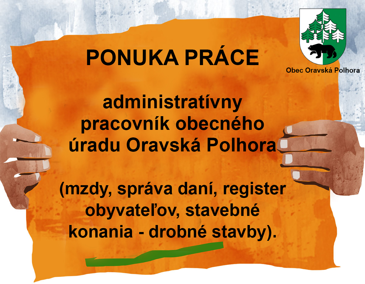Obec Oravská Polhora v súlade s ustanovením § 5 zákona č. 552/2003 Z. z. o výkone práce vo verejnom záujme vyhlasuje výberové konanie na pozíciu: administratívny pracovník/pracovníčka - mzdy, správa daní, register obyvateľov, stavebné konania (drobné stavby).