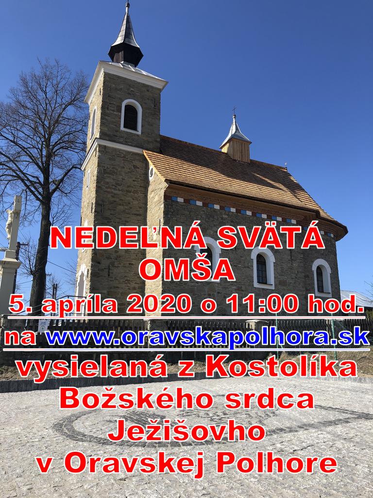 Tak ako uplynulú nedeľu aj tú nasledujúcu Vám prinášame svätú omšu, tento krát z kamenného kostolíka Božského srdca Ježišovho. Nezabudnite v nedeľu 5.4.2020 o 11:00 hod. Aj takto "na diaľku" sa môžeme spoločne zúčastniť svätej omše ako jedna veľká farská rodina.